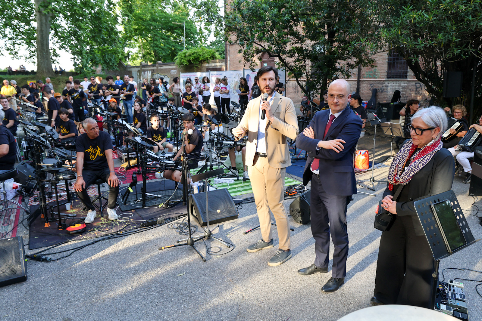 PROGETTI EUROPEI E AMBIENTE - Giovedì 29 maggio 2025 alle 19 negli spazi esterni del Centro Slavich di viale Alfonso d'Este 13. Evento gratuito, cittadini invitati a partecipare "Benvenuti cantieri", 100 musicisti si esibiscono all'unisono negli spazi che