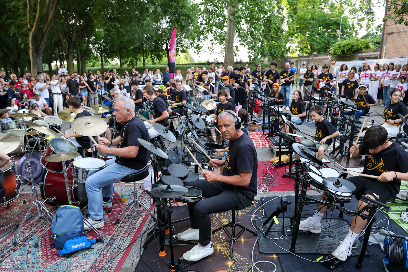 L'appuntamento musicale è ispirato al format Rockin'1000 di Cesena: circa 100 musicisti tra chitarre, batterie, bassi e cori suoneranno insieme alcuni brani rock. Apriranno il concerto le band di allievi MusiJam a conclusione del loro percorso di musica d'insieme. In chiusura, il concerto della band docenti di MusiJam e la Corale Veneziani con un gospel "Stand Up", accompagnati al pianoforte da Stefano Raimondi. Evento con la partecipazione delle classi della Scuola Primaria Tumiati di Ferrara.