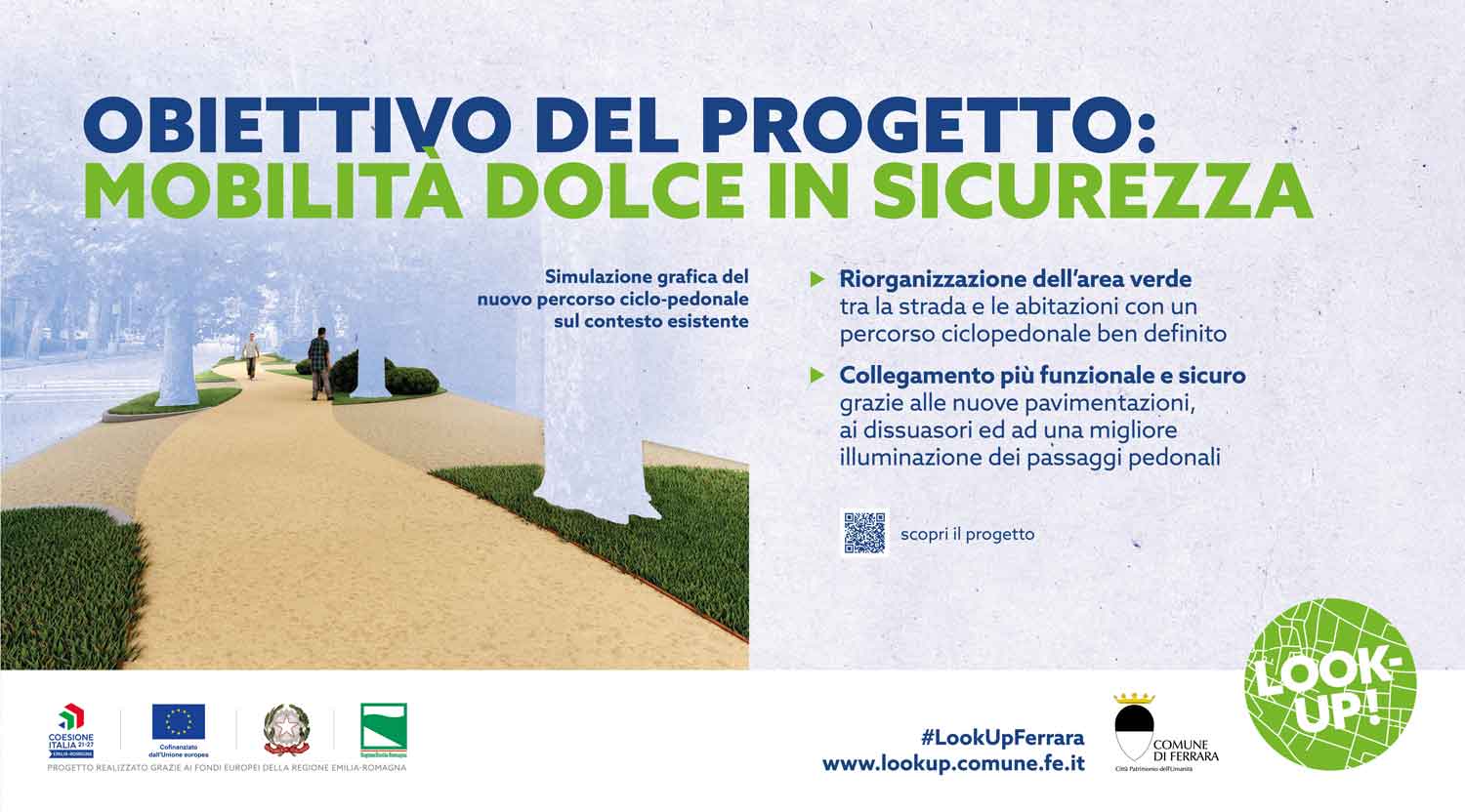 Viale Alfonso d’Este è un importante snodo di collegamento interno alla città di Ferrara. Punto strategico lungo cui si dipanano da un lato le Mura storiche e i Bagni Ducali, dall’altro la basilica di San Giorgio e il nucleo storico della città. L’attuale percorso ciclo-pedonale di viale D’Este si interrompe all’altezza di via Coperta, non consentendo di raggiungere in sicurezza i Bagni Ducali. L’intervento di completamento e ampliamento permetterà di potenziare la rete di connessione interna alla città murata, facilitando la connessione in piena sicurezza, favorendo una migliore accessibilità e una mobilità più sostenibile, oltre a permettere un comodo collegamento con un importante snodo del trasporto pubblico situato in Piazzale Medaglie d’oro. Verrà inoltre liberata un’area significativa a ridosso delle Mura storiche oggi impropriamente utilizzata come area di sosta non regolamentata.