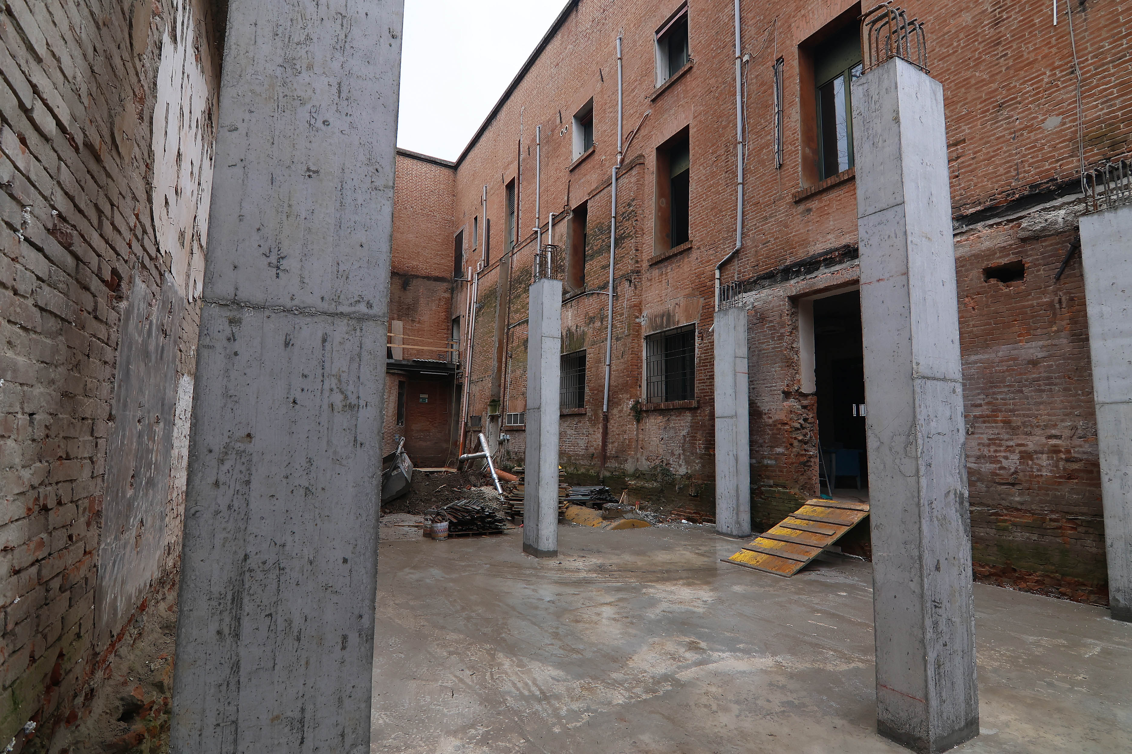 Riqualificazione del cortile interno, con rifacimento scala e installazione ascensore montacarichi