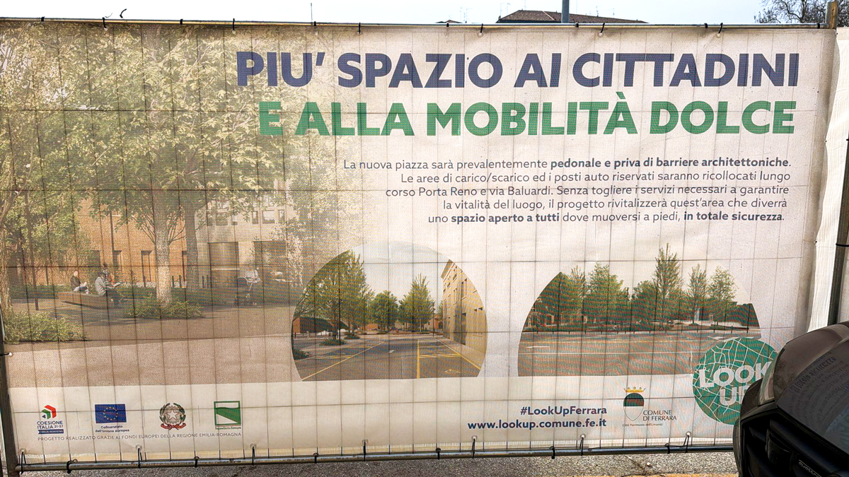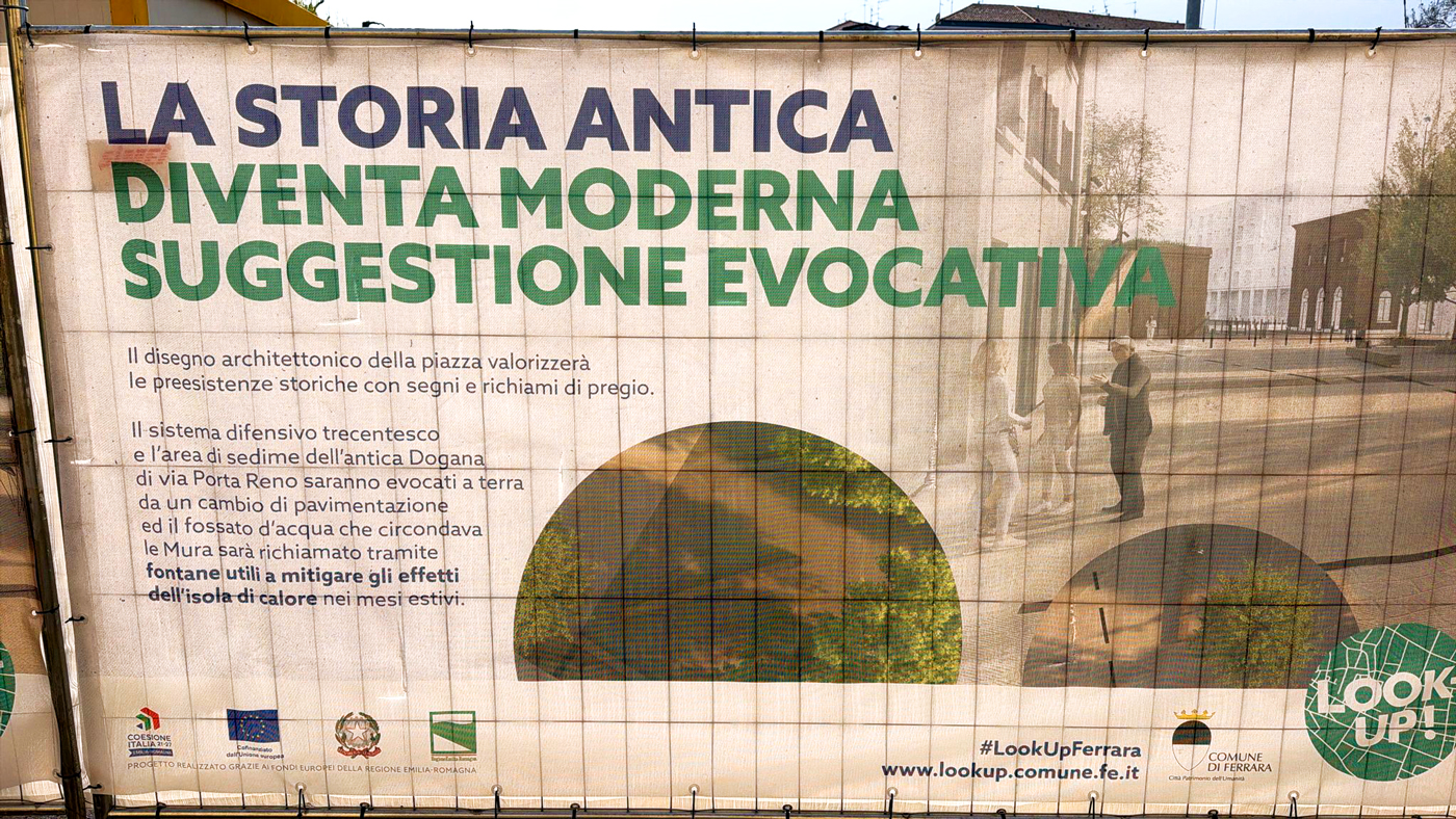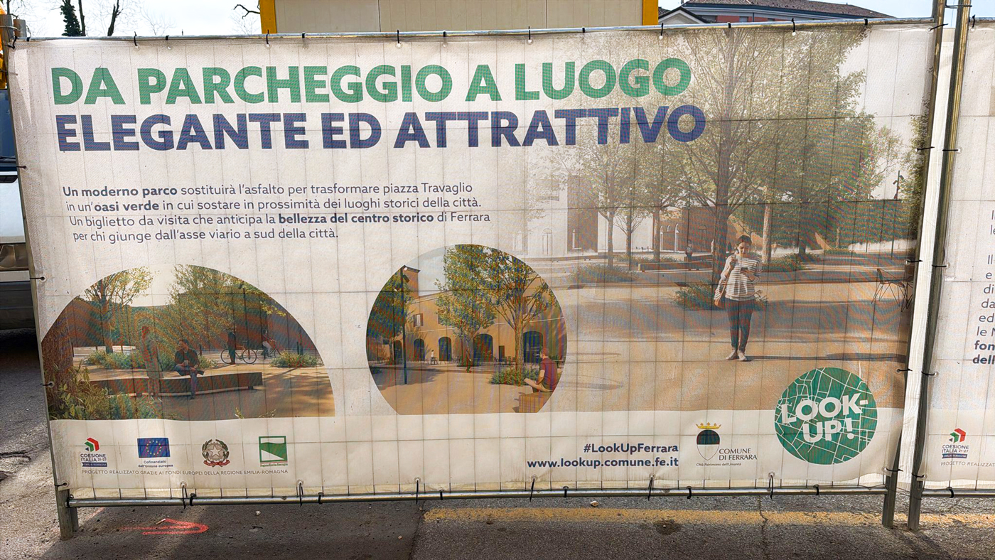 Arrivando da sud, Piazza Travaglio è il primo ingresso al centro storico di Ferrara.